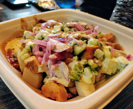 Enttäuschend kleine Portion für den verhältnismässig hohen Preis. Das Nanbrot ist zu dick und schmeckt nach Pizzateig und ist extrem langweilig, genau wie das Essen ... übrigens die scharfe Soße ist nicht scharf und Der Reise schmeckte wässrig. Der Laden möchte offensichtlich trendig sein ... aber schafft es definitiv nicht über den typischen Fast Food Imbisseinheitsbreit in Amerika hinauszukommen. Des weiteren kamen wir noch in den Genuss eines ohrenbetäubenden Lärms wegen eines Feueralarms während unseres Aufenthaltes. Leider wurde uns dazu nichts gesagt so das wir mit klingelnden Ohren als letztes den Laden verlassen haben und unser Essen auf der Straße zu Ende aufessen musste. Insgesamt ein furchtbares Erlebnis.