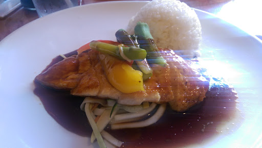 The food was so flavorful. I have been to about 9 different Hibachi restaurants and this was BY FAR the best tasting. The flavor of the clear broth, onion soup was spectacular. The mustard and ginger sauces were so pure. Not watered down. The chef was a little underwhelming, but still nice and he tried a little bit. Im not into the flair of the cooking so much anymore, so I didnt really care. Plus it was the end of lunch, so Im guessing that they were a bit lax. Also, the part where the Hibachi grills were was small. There were only 2 of them, but I dont care, the food was SO good, Ill go back again. I really loved the taste.Oh and the price was good (compared to others. Steak & shrimp was $24 and I didnt have to pay extra for fried rice). Can you tell how much I loved it? :-)