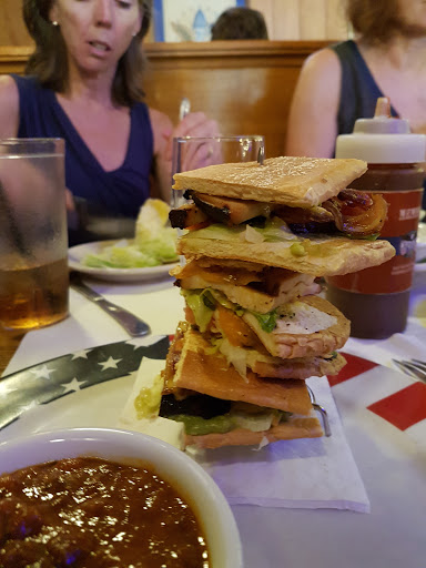 This place is a shell of its former self. Our server should be ashamed for recommending the brisket, which did not taste at all like itd seen a BBQ - no smoke, and, for that matter, no flavor; yeah, it was moist, but so what. Our ribs were overcooked. Our sons corndog was soggy. And our waiter seemed to have something hed rather do than serve tables (seemed to be just watching college FB on the TVs). Such a shame how downhill this place seems to have gone. Maybe I shouldve known something was up when I was told they dont stamp the tables anymore. Used to love it, but dont think Ill be back.