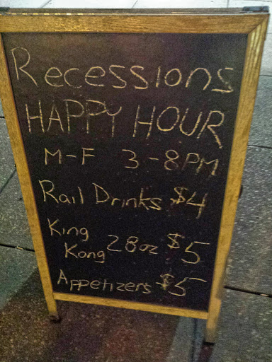 What can you say about Recessions? Its a divey, dark bar in the basement of an office building....and its fantastic! If youre looking for a cheap bar with lots of character, diverse clientele, and a downtown location...Recessions is an amazing choice. The food and drinks are good and incredibly cheap; the Friday karaoke raucous and wonderful; the bartenders friendly and efficient. Its simply a great, under-the-radar, CHEAP bar in an otherwise pricey and pretentious neighborhood.