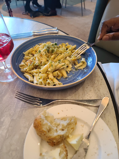 This large restaurant on the terrace floor of the Kennedy Center is well suited to pre concert dining. The large well laid out room appears immense thanks to the very high ceilings; our table near the window offered splendid views of the potomac and the take offs from National. Service is prompt and efficient, but in a mass serving kind of way, meaning that they serve you the food then move on to the next table and youll struggle to get their attention if you need anything. The menu is small, changes only once a year from what I can tell, and there are no specials. The prices as much higher than what the food is worth (and dont expect much), but you king of expect it here at the Kennedy Center. All in all, you come here for the experience, not the food. If they only changed the menu more often, they could do so much more with this restaurant!