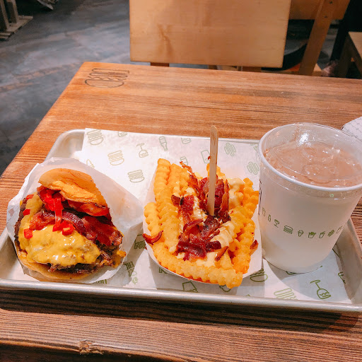 This place only survives on tourists dimes. Locals DO NOT EAT HERE. Their version of a corndog resembles the worst type of carny food and shakes are mediocre. The only thing Shake Shack is good for is updating your will. Got severe food poisoning (dehydration, dizziness, stomach pains, etc.) on my last and FINAL visit. It lasted for a week. I ate a cheeseburger which was raw or undercooked. When I asked an employee she said, “We always cook our burgers to medium. You have to tell us if you want it cooked differently.” Hmm, interesting. It was more like mid-rare on the outside and RAW on the inside. My mistake for giving them another chance.