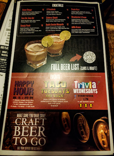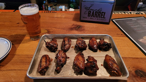 Ive been eating at Smoke and Barrel over a year. Im sitting at their Sunday brunch right now, which Im pleased to say is as excellent as their dinner service. The food is all amazing, Ive never tried anything I didnt like. I would highly suggest the grit cakes with chipotle pesto or the fried pickles. Also the sweet potato fries are AMAZING. If you get any sauce, the chipotle honey butter is a personal favorite of mine. DELICIOUS. My fiancée is vegetarian, and we always order the vegan wings (which are amazing). Ive also tried all the meaty options on the menu, which are very good. Great options for carnivores and vegetarians alike. Also the sweet potato donuts are to die for :D Incredible drink menu. Right now over 25 craft beers on tap (always changing and always fantastic), plus a bunch of bourbons, whiskeys, full bar, signature cocktails, shandy, mead, cider-pretty much anything you could want. This is always my go to BBQ bourbon and beer spot, and I suggest it to everyone. Must try!