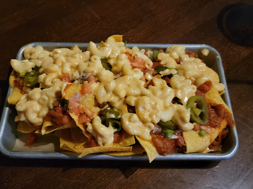 As you walk up the street, dodging traffic and gawking at the proud roof top bar (its very colorful!) you come to a modern day saloon. The outside is decorated with barrels and wooden signs to announce you have arrived at the Smoke and Barrel. This place has two floors. The top, street level is more of a quiet restaurant. The downstairs is more bar. You order from the bartender and pay, then the kitchen delivers your food to your table. I had the fried pickles. They were pretty good, but not the best Ive had. My friend had the chicken nacho platter, and it was a smorgasbord of gooey melty cheese, warm delicious chicken, and fresh crispy nachos. The drinks were also very good, and reasonably priced. My table tried a few scotchs, and a few IPAs. I also had a cider. Their selections were pretty great. I highly recommend coming here, and look forward to going again soon!