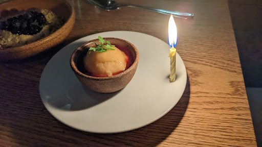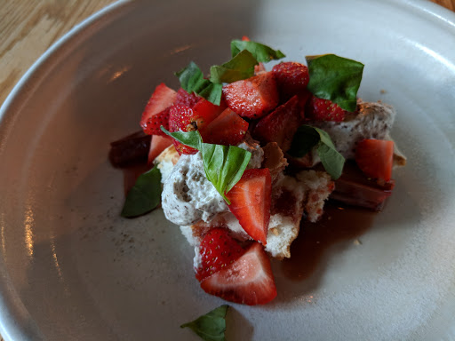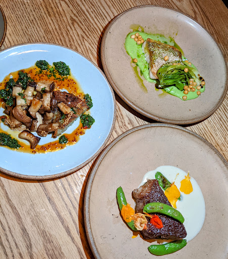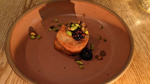 Tucker away on a side street just off the main Adams Morgan drag, Tail Up Goat is an upscale neighborhood oasis. Its a spacious restaurant compared to your standard Adams Morgan restaurant. They have a full bar and a large dining room with tables squeezed pretty tightly to each other, but not in a way thats invasive. Everything about this restaurant matches from the modern wood decor to the lighting to the impeccable service to the plates. Since dishes that include mousse liver and rabbit sausage scares me a little, my wife and I ordered the below dishes: 1) Seaweed sourdough- They make all their own bread and added an amazingly flavorful pork spread to it. It includes two pieces of bread. 2) Stracciatella- This dish was one of the most unique. It comes with amazing bread crumbs and this white type of cheese. If youre a texture person, this may surprise you, but the taste makes it worth it. 3) Smoked rutabaga ravioli- It was quality ravioli, but my wife and I felt it could have used a more bold pesto sauce. Still good, though. 4) Smoked hen of the woods mushroom- My wife and I debated whether or not this dish included a full hen on the bone, it did not. It literally is a huge pile of mushrooms with amazing sauces. 5) Almond cake- It was good, but after the main courses, its clear dessert isnt Tail Up Goats thing. My wife and I each ordered two drinks. They dont have any overly sweet drinks, but their version of a daiquiri was good and refreshing. All of the above came to $170+, which surprised us a bit. The drinks are $13-$15, which made it a bit more expensive. The drinks were good, but definitely not worth the price of minibars cocktails, which are the best in the city. The food is reasonable for a 5 star restaurant. Still a very solid 5 star experience (Any restaurant that surprises you with a refreshing glass of celery juice deserves many stars!)! Tail Up Goat is a place to visit!