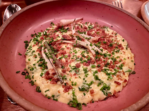 This place is very serious about your reservations. Three calls and a text to confirm a party of two. Yes we are committed! We star off with the Steak Tartare. Beef hand-cut over potato salad and home made bread! Genius combination! Then we had the Stracciatella with sugar snap peas and rhubarb jam and pork rind. Heavenly heavenly! I deducted one star because of the lack of thoughtfulness. One cannot eat curd (Stracciatella) without toast or bread. It was incomplete. Asked for some bread for an additional $3 for bread. Cheap...like you were being nickel and dimmed.cannot eat curd alone. It felt like a brief encounter at a Chipotle. Then we had the Tagliatelle Amatriciana. It was perfect in every way. Lastly The Stuffed Porgy. The spice and presentation was gorgeous! It was not boneless as announced as many were found in the stomach and top fin area. Paella stuffing was a poor imitation. It was very soggy and could have been tastier. Too much spice outside the fish but not inside the fish where it mattered more. Dessert selection was not enticing. Lastly, for a Mediterranean Modern Take, a bubbly of French Cuvée was nice but Cava or Prosecco would have been better choices. Our server rocked...his name was Nick. We had the best table in the room by the window. Thanks! We will try again after the tweaks...maybe. DC has so many crazy great dining options...