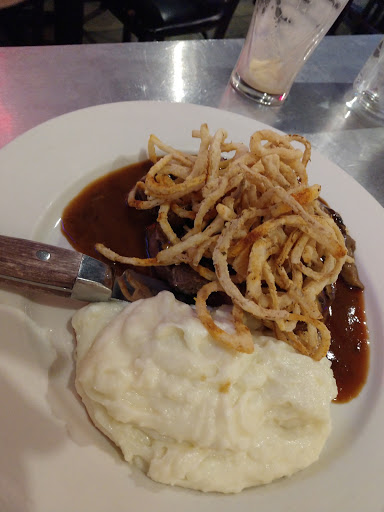 Steak salad and sweet potato fries with half off wine? My Wednesday night dreams all came true!! Also ❤ Miguel. Best bartender anywhere.