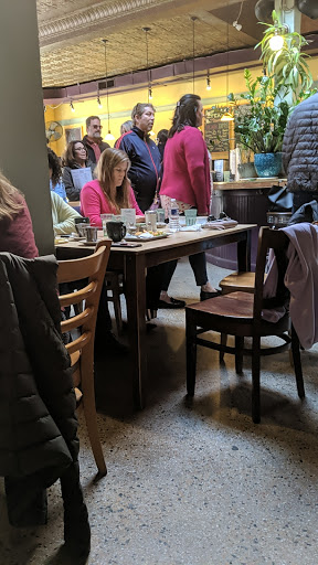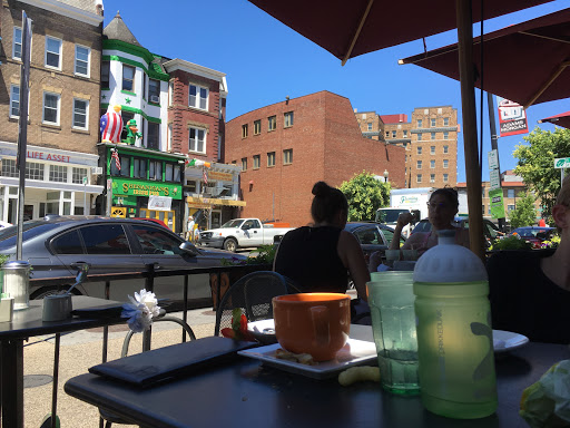 Tryst is the homey neighborhood coffee, breakfast, lunch and lunch-for-dinner spot. Pros: Lots of seating. You can get a couch or a table depending on your purpose and company. Menu has great variety. Breakfast and lunch. Healthy and decadent. Drinks are delicious and they serve animal crackers with them. Many menu items are yummy, some are so so. Outdoor seating in summer Cons: Extremely busy on weekends during brunch, and weekdays for people working in lap tops. Wifi is spotty and they dont post the password anywhere. Very hard to figure out where you can plug in lap top. Service can be very very slow. Servers do not have any sense of urgency. But you are in a coffee coffee shop so the message is "RE-lax" Overall, love this place over Starbucks any day to support local everything.