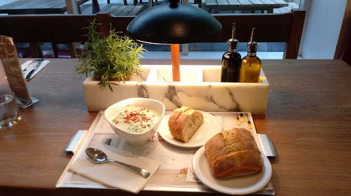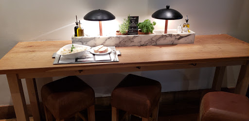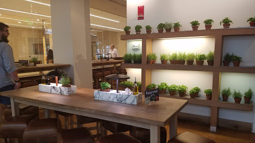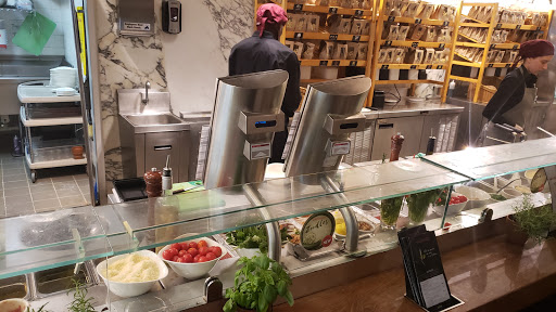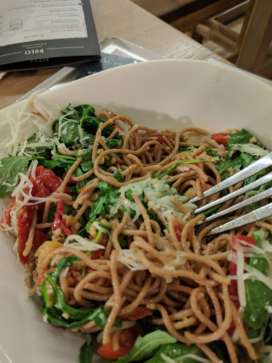 With such of an abundance of diverse dining options in the area, a repeat visit would not be my first choice. What I liked was the decor: fresh, fun, modern, co temporary, thoughtful mix of chic and relaxing. The staff was fun and cheery but a little more focused on entertaining themselves than helping me place an order. We were asked if it was our first vist to which we replied "yes." Response: "Here, youll need these 2 cards." A simple, minute to further explain that..."the restraurant is a new age cafeteria that is divided into sections. One section is for pasta, another for pizza/lasagne and a bar. Order an item, swipe your card, grab a pager." Because we arrived at 3pm, there was only 4 customers and at least 6 to 7 staff members. Yet, I stood in front of an empty lasagne station for over 8 minutes. Id estimate 35 to 40 minutes from entrance to first bite. The lasagne had very little sauce and even less flavor. Would rather have Stouffers. My date had a shrimp based pasta that was fine. The bread was blah. Heather at the bar was nice and helpful. Drinks were good value at this hour. $42 for two entrees and 2 drinks not bad but we had to do all the legwork so for the quality I would rather pay $10-15 more for high quality experience (or find a groupon) that comes with a great server or pay $10-15 less and get street food or fast food.