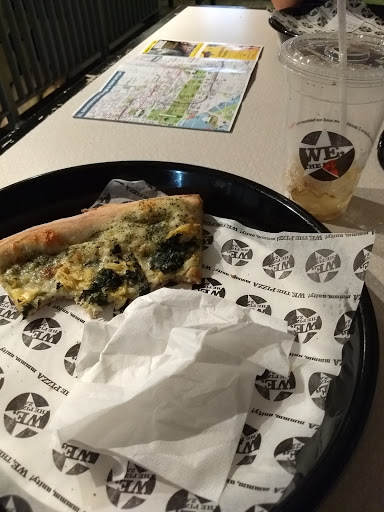 A lot of the people posting one-star reviews did so during the restaurants first week or two doing business. Fair enough. I was there, too. Service was slow, employees were confused, some woman fainted in line, paramedics came - it was a huge debacle. On the other hand, the place was absolutely mobbed since the place next door is so good and also owned and operated by Spike. People were packed into that place, it was uncomfortable, and thats not We the Pizzas fault. It made it really hard on them. Since those first couple weeks, though, it has been a breeze to order and the pizza is still great. Buffalo Chicken, Mushroom, plain cheese, pepperoni... my wife and I pick up two larges and snack on them all week. Great stuff. The sodas are fun, too. Judge for yourself. People get sanctimonious about pizza for some reason. Not here on this site, but man, the people in line.... listen.... if New York/New Jersey pizza is so great, move back up there. In the meantime, shut the f*** up.