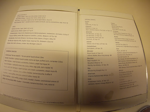 A great place for artisanal cocktails. They have an extensive cocktail list and every drink our group ordered was delicious. However I wouldnt go in with the expectations for fine dining experience as most dishes are more like upscale bar food. The food menu clearly shows its effort of bringing in interesting twists and probably resonating the experience next door at mini bar. But some soundingly interesting dishes came out rather underwhelming like the uni panini and lobster roll. Not sure if i would bother with the troublesome reservation process here on a regular basis, but Id recommend if theres a special occasion or you have a foodie guest in town and you want to show them the dc dining experience.