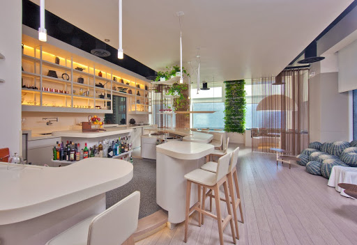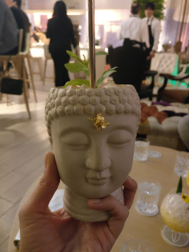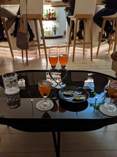 內部裝飾非常的精緻,是白色條紋和大量的植物,飲料菜單非常的經典(有含液氮的飲料)或者異想天開的雞尾酒。餐廳的小吃非常不錯,真的太棒了。