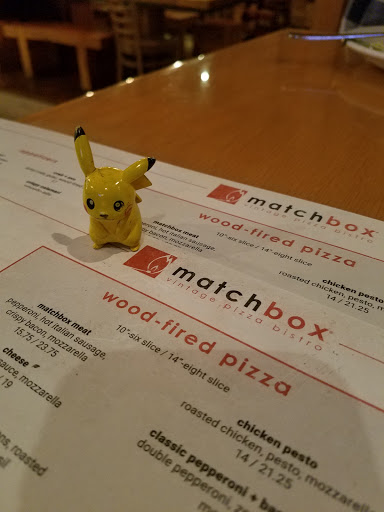 I really like Matchbox. Everyone really likes Matchbox, right? Its an upscale pizza place with famous sliders - casual & familiar enough to take your Midwestern family there for dinner when they visit during tourist season, but classy enough for a first date or drinks with friends before going dancing at Saint Ex next door. If youre going to Matchbox, you should be getting the pizza, period. Its borderline perfection - thin-crust, crispy, not too heavy or too greasy, with fresh toppings & interesting combinations. My favorite is the Prosciutto & Black Mission Fig, which also includes roasted garlic, mozzarella, Gorgonzola, & black pepper - divine, almost dessert-like, very fresh. Im also a big fan of the Fire & Smoke pizza: a spicy combo of fire-roasted red peppers, Spanish onions, chipotle pepper, tomato sauce, garlic puree, smoked gouda, fresh basil. If youre NOT getting pizza - or even if you are but want a hearty appetizer - the next most acceptable thing on the menu is their mini burgers. You can order three, six, or nine, & they come with a pile of onion straws that I cant help but inhale every time. Dont expect me to share mine. The one thing I do NOT like at Matchbox is the Fire & Smoke drink, not to be confused with the delicious pizza of the same name. This drink tastes like someone ground out cigarette butts in a glass - not smoky in a good way, smoky in a cancerous way. Avoid at all costs - but every other drink Ive ever had there has been delicious. The ambiance is cozy - spacious building with high ceilings & an open format, but its dark & glowing, so it feels intimate. If youre there for a special occasion with a five or six, ask if you can sit at one of their "floating" tables, two booths that seem to hang over the rest of the restaurant & offer a great aerial view of the kitchen & bar from through their glass walls.