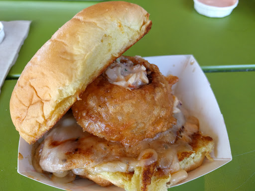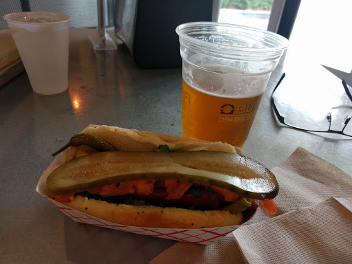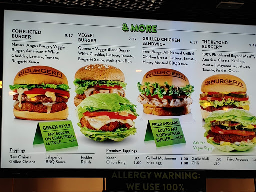 Burger Fi puts a lot of effort into doing things the right way. Their burgers are nothing but pure beef, cooked well, and all the toppings are good too. They use Martins brand potato buns for both hot dogs and hamburgers, by the way, for anyone who needs to know the ingredients. Beyond the burgers and hot dogs, they have a big selection of sodas, beers, and even wines, and then theres the frozen custard. Its amazingly smooth and creamy, much better than your average soft serve ice cream from other places. Theyll also use it to makes floats and what they call "concretes", which I havent tried but which sound delicious. Their fries are properly fried in oil twice for the best taste, and have almost always been perfectly crispy (I had limp fries only once). Definitely well worth a visit. A meal of a hamburger, fries, and a drink will start you at about $12-15, though you can fill up a bit more cheaply if needed. Burgers are about $6 and up on their own, and hot dogs just under $4, though theyre thick so theyre enough for a meal with fries or onion rings.