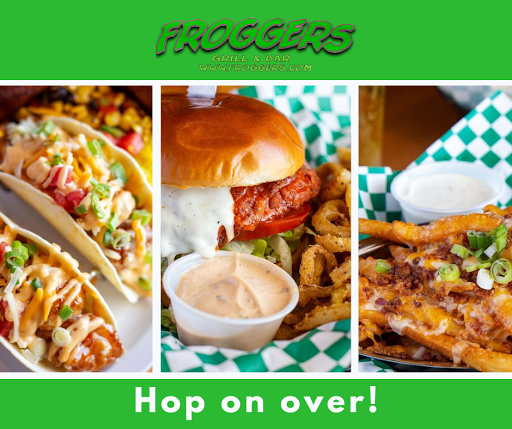 My family and I have been to other Froggers locations before. However, this was our first time at this location which is within minutes from our home. First of all, it was Tuesday 6:40 PM, we were going to sit on some very spacious area near the bathroom and kitchen, which would have been convenient since we were with our young daughter. However, we were asked to move because they were setting the area for Poker night. We obliged. And we found a cozy table by the window on the other side of the restaurant. The view of Pearl Lake was very peaceful. Little did we know that next to us was going to start the bean bag toss and the annoying, constant thud. We had already order our meal, so we stayed put. That was a big mistake for we were so far from the kitchen that our food was delayed and half warm, but also our server was missing in action most of the time we were there. A party at another table next to us, that sat there after we did, got their food before us and left before we were able to get our meal. According to the manager they were short staff in the kitchen and he gave us a discount, but the fact was that they didnt consider that we had young children with us. I also wanted to order another glass of wine before happy hour was over, but the waitress was nowhere to be found, then she came right after 7 PM. The meal ended up giving us heartburn. It was too greasy and cold. Its our first and last time. The other reviewers negative experience and comments are consistent with our experience.
