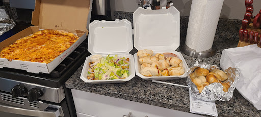 Nice little hole in the wall pizza place. They have good quality pizza. Id have liked to try the daily special (Thursday was lasagna) next time Im in. The garlic knots were good too. I ordered a Medium half supreme with half cheese. It fed 2 kids and 2 adults with an extra two slices to spare! It was under $20. The place was busy there were 5-6 other customers ordering and picking up pizzas. I lived in NY and the pizza was spot on to authentic good NY pizza. I just wish they did wings but the garlic knots were awesome!