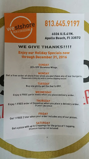 "Westshore, pizza and cheesesteaks" The pizza was meh, and the cheese steak was terrible. The order wasnt even correct. They seemed mad that they even had to talk to me on the phone.