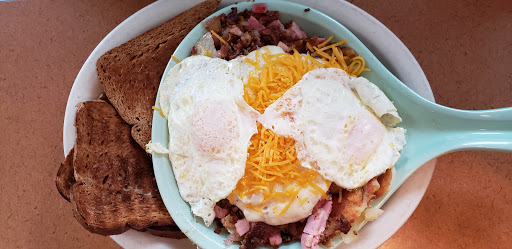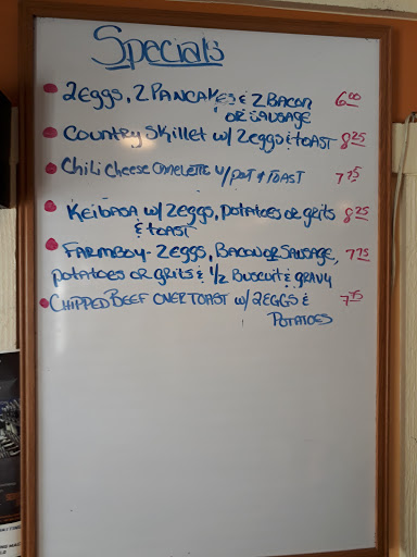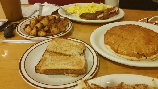 This place felt dirty and greasy walking in the door. I really hoped I would find our go to breakfast place here. The food was horrible. My sons pancakes were dry and tasted like they had been cooked with stale grease. His sausage link was raw. The waitress replaced it immediately, she had a good attitude(the only reason they got two stars). My orange juice tasted like medal. My eggs benedict had a bad mayonnaise flavor not delicate like Im used too. The bacon was hard to chew. We all had really bad cramping in our stomachs when we left. I could go on and on. Waitress was nice, price wasnt bad.