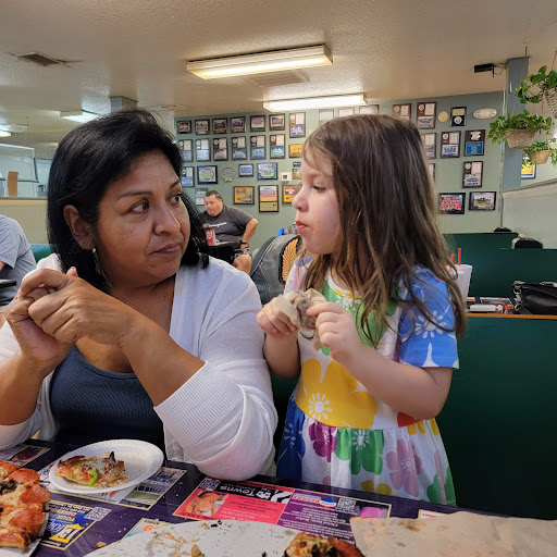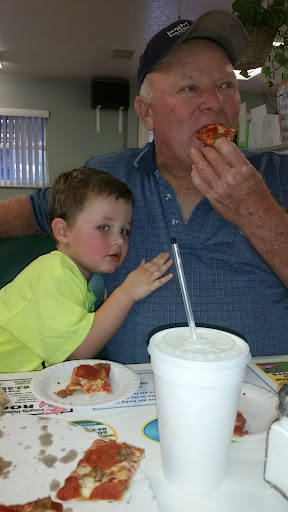 Good thin crust pizza already cut into bite-sized squares for the little ones, lots of topping choices, and free refills. Great family atmosphere and friendly staff.