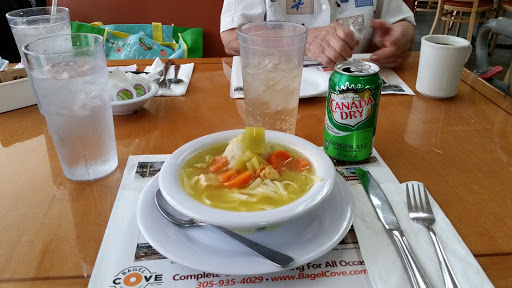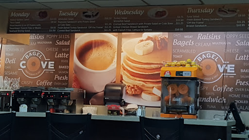 Have visited Bagel Cove a few times now delicious egg white omelettes made with fresh crunchy ingredients , tuna salad low fat which is delicious accompanied with crisp tasty bagel chips busy with a great American traditional Diner feel , great for families Breakfast or lunch with the added bonus of being open late so can stop by for a bagel through the window after a night out ! Definitely worth a visit