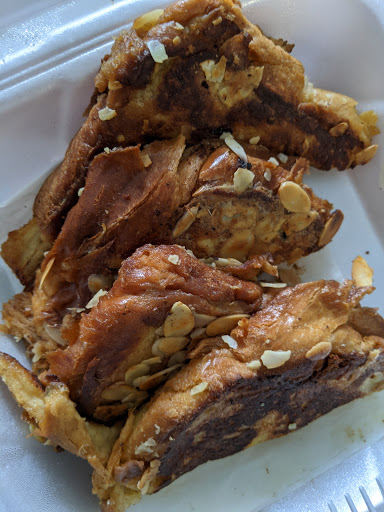 The homemade cheese blintzes are delicious! So are the banana pancakes, pecan pancakes, and waffles. If you get there before 10:30 AM, you usually get a small plate of miniature pastries. For lunch, they have some great deli sandwiches, and theyre huge! And the bakery makes delicious prune hamantaschen. Service is friendly. My family and I have been coming here for years and weve never been disappointed.