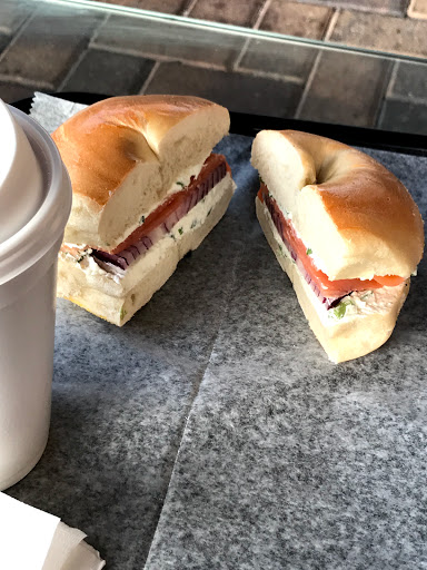 Food is good, but service is extremely slow! Waited in the "express" line for 25 minutes to order a bagel to go... only 2 people were ahead of me. On top of that, I was charged $13.50 for a bacon, egg, and cheese bagel. ?? Doesnt seem right.