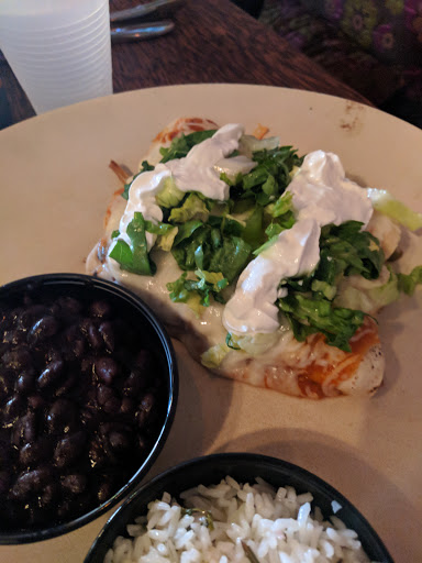 The staff was clearly rushing us, the food was the same quality as Chipotle (despite being very expensive), the drinks were also expensive and half of the fountain drinks were "out of order", and lastly they dont even offer the classic refillable chips and salsa... How can you not offer refillable chips and salsa at a Mexican place?