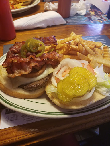 Food had good taste. My salad was fresh, potatoes and fried okra great. BUT my porterhouse steak was waaaaaaay over done, dry n tough. We were really hungry and held out to stop here on our way back home from Miami. Wife had grilled chicken salad , that was good, ham and cheese sandwich was good, which my daughter ordered. My other daughter had a ribeye and it too was way over cooked , tough, and dry. Service was good. Umm may stop if Im passing through but won t go out of my way.