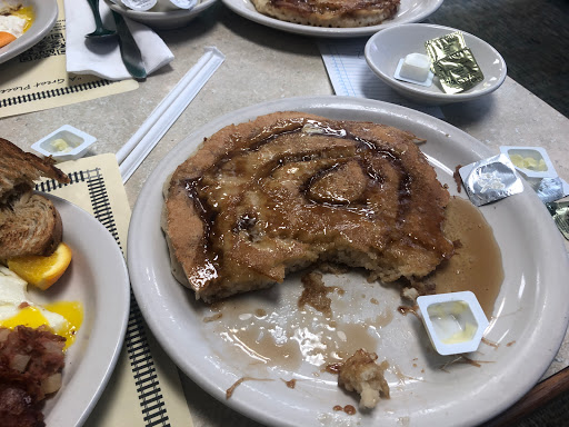 The cinnamon swirl pancakes were to die for. This was my first time here. Loved it and my waitress was awesome.