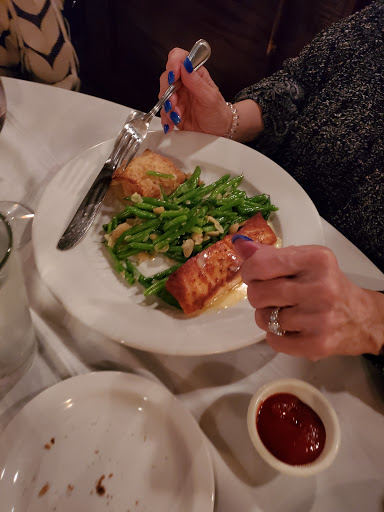 Nice atmosphere with comfortable upholstered banquettes - we loved our corner table. The salmon entree was perfectly portioned and prepared, fresh sauteed spinach, layered potatoes were delicious - the mussels were barely cooked and had lots of garlic and broth for dipping very crusty baguette - exceptionally good bread. Even though it was simple, my husband devoured the Peach Melba. Prix fixe really is a nice deal. We will definitely be back as we had a lovely evening!