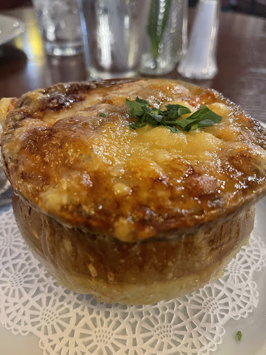 If youre nostalgic for a true French bistro, this is the place! And if its nice out sit on the patio - its just like sitting out on the boulevard in Paris. Come to this restaurant to eat good food, have a glass of wine and relax. The appetizers, especially the onion soup and foie gras, are fantastic. The entrees are good, too, but we generally get the specials because they are usually so different from the dinner fare found in restaurants. The red fish last week was really exceptional. They have real cremé brulee! And if youve never had a peach melba I recommend it highly. Enjoy!