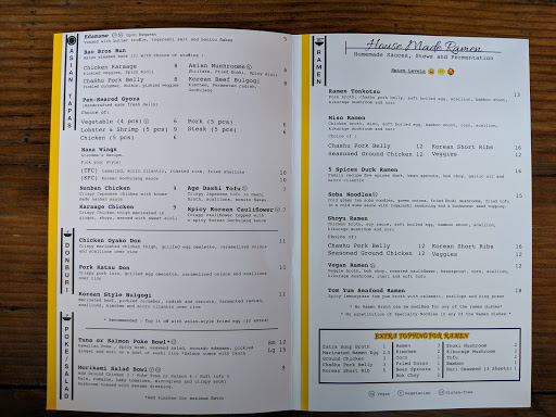 I got the 5 Spices Duck Ramen ($16), which had a delicious and flavorful broth, tasty Ramen noodles, and tender duck. Most items on the menu span $12-$15 (tax not included, but also no waiters to tip). The steamed tofu buns seemed pricey, until we see the size of them: they are huge! My friend enjoyed her Tuna Poke bowl. Its new, and you can tell. The website is still missing the order online section, so call ahead if you want to beat the line. It also feels crowded because there is almost no room to stand in line while waiting to order at the front counter. A table to the left when you walk in the front entrance blocks where the line should flow, when the line hits the front door at 3 people long.