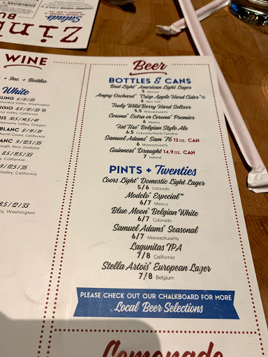 The Zinburger is good but dont order the "specialty drinks" as they are watered down! We sat at the bar and the service was terrible. The waitress acted like she was doing us a favor! Had no idea how to wait on people and should never had been hired. The GM was all over the place too busy changing television channels than being concerned at the food. My wife ordered the blue cheese burger and it was so salty she couldnt eat it! Yes they finally took off our bill but we will not be returning!