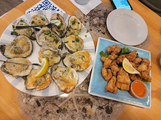 Oysters were awesome! Crab cakes also were great! Fish was fresh and delicious. Their house salad has fresh strawberries in it and Im not one for fruit in my salad but the blue cheese crumbles in it made up for it. So the only negatives about this place is the fruit in the salad, the seasoned rice only tasted like soy sauce, and the drunk people that was sitting at the table next to us.