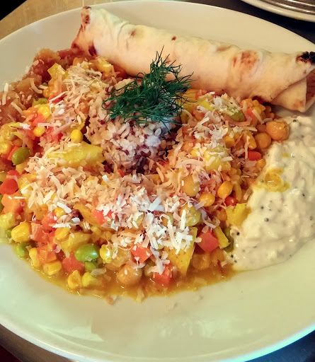 Slightly out of the way location, well worth the search! My wife and I love places like this - casual with an eclectic menu and high quality fresh food. The mix in the pieces of art (for sale) and this becomes truly one of a kind. We had lunch there and started with a special Asian platter. Loved everything from the bok choy to the pork dumplings. Very reasonably priced at $8. My wife had the Indian vegetarian dish with chick peas and their own pineapple chutney. Just a bit more than a hint of hot. She loved it. My dish, the crab salad, was outstanding. The crab was perfect, very mild, tender and fresh. The slightly spicy and tart seasoned mayo on the side was also great. So tired of having asparagus that is either hard or mushy, but not here. They did it just right. We were stuffed, but ventured on to the apple fritters for dessert. Nicely crispy on the outside, not at all greasy, with a wonderful caramel sauce drizzled on the plate. Glad we found it. hope you will too!