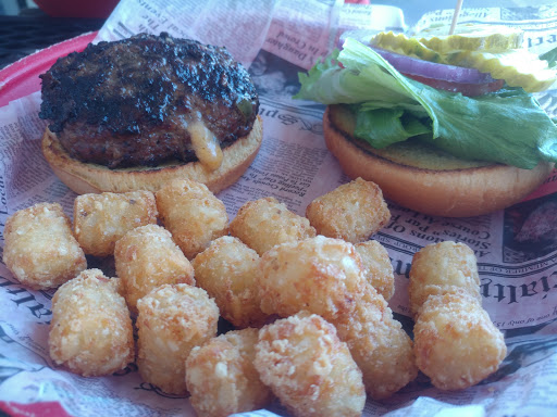 The burgers were awesome, very flavorful and big. The tots were good and crisp. The portion size for the sides was overly small and I left a little hungry. The waitress was very nice and very attentive. The inside of the restaurant is small and cramped, but very well decorated and clean. Overall a good experience.