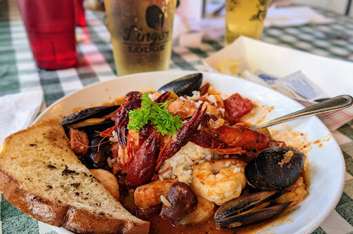 We made out first trip to the Linger Lodge on a Friday evening in early January. The place was dead (no pun intended). The food was passable: especially good fried offerings, but nothing to write a review about. The low prices ($1 draft beer) make it hard to complain about being served with styrofoam plates, but since the major appeal of the restaurant is its location, it makes a better lunch spot than dinner. We couldnt see the alligator-infested river or moss-covered spookiness of the place after dark. Of course theres much to see inside if you like looking at a lot dead snakes and an impressive display of exceptionally bad taxidermy.