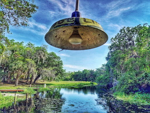 One of a kind. Licence plates from every state. Uniform patches of firemen ,police, service men. Taxidermist prepared wild life from squirrels, birds,fish, snakes alligators and more. Screened porch dining faces river. Watch birds & squirrels. Dont get too close to water... alligators! Great food. Could be a bit hard to find. Looks run down from parking lot. Very old RV park, picnic table @ each site. Lots of trees, squirrels,birds. Not the RV park with only a concrete pad between coaches! But we have heard it is destined for demolition everyone will need to relocate) and a complete renovation.