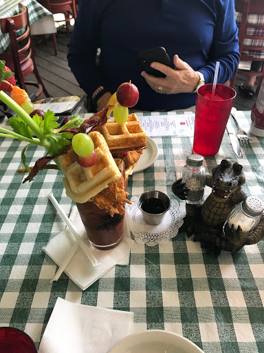 Dont let the interesting decor (taxidermy all the way) and crazy menu (no, no road kill served here) deter you from dining at Linger Lodge. The fried green tomatoes were an amazing start to my meal with the perfect amount of corn meal and one of the best remoulades I have ever had. My entree was the server-recommended barbecue chicken which was so tender, moist and flavorful. You have your choice of sides, so definitely go with the mixed veggies to counteract the heavy chicken and the fries were perfectly crispy. Drinks: Not for the faint of heart. The swamp water was not at all what I expected but it was good, despite it being heavy on raspberry liquor. The Long Island Iced Tea was so strong that two of us couldnt even finish it.