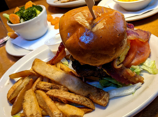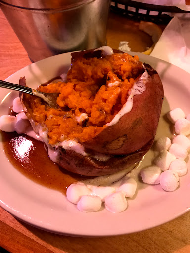 Food is very good for the price. Ive eaten here several times. Weve had steak, chicken, burgers and ribs, all were increadible. However, I agree with some of the other reviews, this is one of the noisiest places ever. Were headed there today right when they open to have lunch. Hoping to catch it when they are not busy so we can relax,a enjoy the food, and actually hear each other talk. When we weigh the noisy, crowded atmosphere against how bad we would like a good steak, the noise usually wins out and we go somewhere else which is a shame because its a really great place with amazing food. Love that you can get a loaded sweet potato with marshmallows and caramel sauce - its like having dessert.