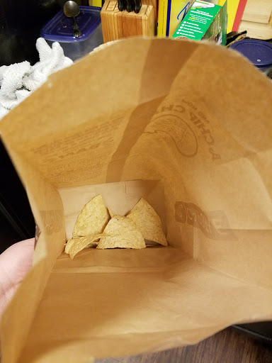 Chipotle must get off charging $3.95 for chips and guac and then only giving a customer 6 chips. Ordered chips and guac with my online order. Came home, and there were only 6 chips in the bag. Makes me think some grubby employee was picking off the bag and still decided to serve it to a customer. YUCK! Rice was unseasoned and my husbands bowl had no tomato salsa as ordered. Posted a pic of bag of chips. What a shame.