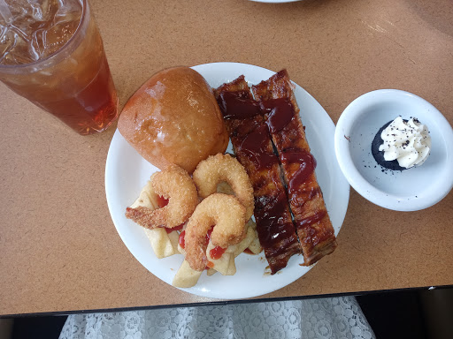 Typical Golden Corral. If you have been to one, you have been to them all. Food is good, service is O.K., and it smells weird. Updated: Manager Jackie is the rudest. She yells at kids and is disrespectful to adults. We refuse to go when she is working because she is truly terrible. She yelled at a young child for spilling his drink on accident. I was there for my birthday dinner and my sons vpk graduation dinner. He specifically requested to eat here or I would have never stayed. I came to the register to pay for the 6 people in my party and use my free buffet coupon for mine. I had called ahead of time to see if they would take it off my phone or if it needed to be printed. They said I did not have to print it. The cashier was punching all the info in and going to let me use my coupon. The manager was busy yelling at the small child for spilling his drink, but over heard our conversation.. she came over and made a huge scene about how I have to print the coupon to use it, and there were people everywhere who saw her act this way. I was completely embarrassed. I tried to explain to her that I had called and they said I could come in but she refused to hear me. I had just done this exact same thing with my other childs free buffet coupon the month before with no issues. She basically told me I was lying. I was so upset and hurt because we are here routinely, at least twice a month. Im very disappointed in the quality of the management here. There were many ways that she could have handled this without treating me and my group like criminals.