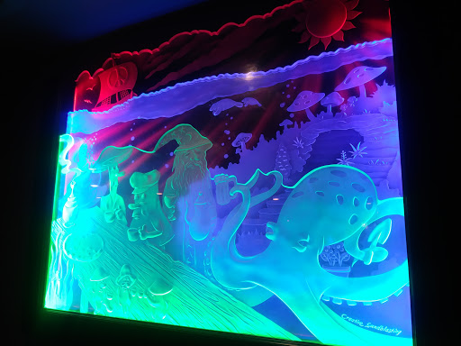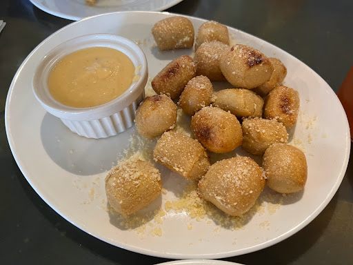 I am a New Yorker style pizza. Therefore, this was not so great for me. What didnt make it for me was the dough its between sweet and great healthy. It remind me of Outback dough of the bread they serve you while you wait for your food. Cheesy bread Iitalian bread with a little bit of cheese, not so great. Large size pizza seemed like a medium enough for two people or three if they are not big eaters, (lol). Wonderful service and the setting with all the TVs very sports bar, all the characters and mushrooms on the wall made it very nice. Of course the wonderful Alien the movie table. It rocked!!! Will I come again, Personally No! But hey the place is always packed!!!