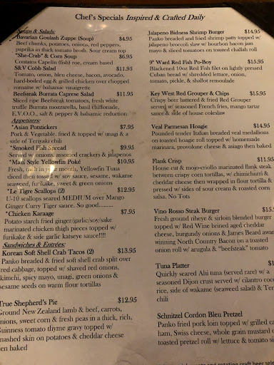 Stein & Vine is a local hidden gem. Sitting in a non-descript location in a strip mall along Bloomingdale Avenue, I drove past it, unknowingly for nearly a year before I first ventured in. I had very low expectations from the outdoor signage, but once I stepped inside and realized how busy the place was, I knew it had to have something special. They have a great craft beer selection, especially if you like Florida beers. Im not much of a wine drinker, but my friends who are assure me that the wine options are equally good. My first few visits involved much waiting because it was so small, but since they expanded into the adjacent space, its so much easier to get a seat at the bar. The popularity of Stein & Vine means, that if you visit during peak times, youre still likely to wait for a table, but it is SO worth it. The food is phenomenal. The menu is small and simple enough that you wont be lost in decision-making land, but it has a wide enough selection that everyone in your group will find something to love. For the first few times I visited, I stayed with the amazing burgers. The Juicy Lacey is my favorite and its so reasonably priced, especially compared to the burgers in some of the other local establishments, that its always a winning choice. Every one of the appetizers is outstanding. The pig wings are always on my order. I eventually began to order of the specials board, and I rarely stray from the special selections now. I strongly recommend reviewing the a-frame before you enter to help you decide because once you get an eyeful and the aroma of the other guests plates, you may have a hard time choosing. Stein & Vine is my go-to lunch meeting spot. Ive never had to wait for a table during that time and the service is always quick. Theyre not too busy on most weeknights, but on Thursday through the weekend you could see quite a wait time, but dont be scared off by it. Have a couple beers or glasses of wine and wait it out. Your palate and stomach will thank you.