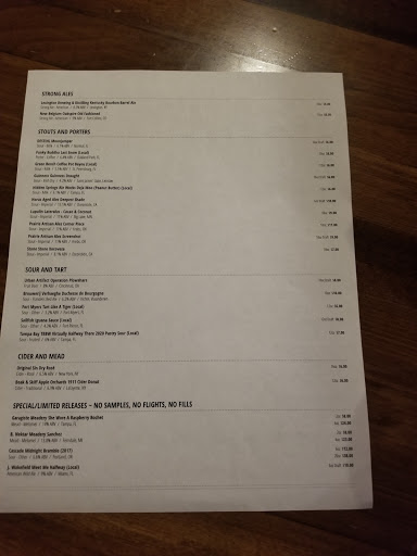 By far the best bar and restaurant East of tampa... maybe in all of Hillsborough County. The kitchen serves inspired gastropub fare that just cant miss. From ahi tacos to pig wings to burgers - everything here is perfect. Their craft beer list is stellar and the servers dont make you feel like an idiot when you need to talk through (or taste) your order. If the conservative FL legislature would get out of the way and let places like this serve a cocktail, I would never leave. Seriously - this place is amazing.