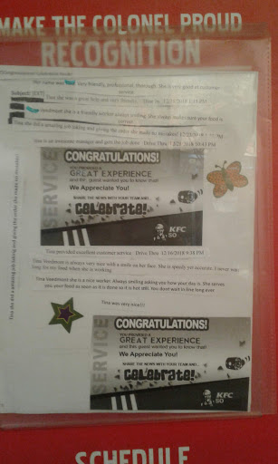 More bad than real extra bad, i dont recommend this KFC to nobody if you want to keep your self alive... 1 Workers without gloves, nasty experience. 2 Waiting line with 3 cars at front of me for over 20 min... 3 I ask for 2 Famous Bowls, when i received my food i would say that they are robbing to customers because each container were half down of mash potatoes, 3 small pieces of chicken, gravy taste like water and no corn. After check all this i trash my $10.26 I swear to god, please dont waste money, time and health in this place...