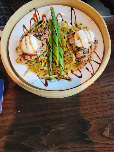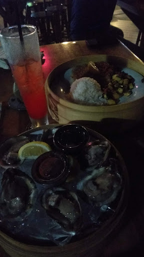 I dined solo at the bar on a Thursday evening that was exceptionally busy according to the bartender Nancy. This location has several bars, I dined at the one on the ground floor inside. I arrived around 7 PM. At that time there was one other gentleman seated at the bar also eating. The bar location doesnt have any TVs however if youre seated in the front of the bar you can swivel to people watch as this bar is situated just off of the hostess stand. It is a full service bar and they apparently have a happy hour until 6 PM. Its not a very large bar but they do have 14 beers on tap and an assortment of liquor and wine along with bottled beers and a few ciders. This location does have free wireless but the speeds on it were horrible situated somewhere around about a half a megabyte. You may be able to get email but thats about it. I was craving fish and I was able to get a list from Nancy as to which selections of fish were farmed and which ones were wild. Out of the wild choices I narrowed my selections down to either the mahi-mahi, the grouper, or the rainbow trout. Ultimately I ended up with the rainbow trout which is described on the menu as "a seared rainbow trout filet served with sautéed mushrooms, zucchini, peppers and roasted tomatoes topped with a mango Chablis reduction". When it arrived via of food runner and served up in a circular bamboo case (they just remove the top to serve), It seemed like I devoured this great tasting meal in all of about probably 15 minutes. I found it to be every bit as described with a great flavor and texture for both the fish and the vegetables however if youre extremely hungry, you may want to opt for an additional side salad or another piece of fish because this serving size was around four or 5 ounces at best. On the plus side, this did allow me to have the caramel cheesecake for dessert which was fresh and delicious as well. Pricing is normal for the area, with the entrée coming in at $17.95 and the desert was around six dollars. My draft beers were $4.25 each. I asked and cocktails come in at anywhere between seven and $10. The décor of the restaurant is fairly standard with a beach/Florida type look. Unique to this location was an attached art gallery perfect for perusing while waiting on a table, I imagine. I could do without the assorted items for sale scattered throughout the restaurant, but I understand that those types of items can be in demand for nonlocal travelers. Perhaps it would be better to set up a nice stand behind the hostess stand or another location where they can sell it all, instead of having it plastered on the walls. As far as the staff goes I really only interacted with the bartender. At first Nancy seemed a little overwhelmed with the large amount of orders she had to fill at the wait station bar, located at the end of the bar.. After a bit though, she warmed up and became a decent conversationalist, as every good bartender should. I was most impressed with the way she interacted with the various age groups bellying up to the bar while waiting on a table. She easily handled young tots all the way up to seniors without even batting an eyelash. She was even able to remain cordial as two, slightly drunk, college aged young men did their best at hitting on her. Overall I would definitely recommend this establishment if youre ever in the area. Its clearly a notch above the local bar fare. It is on par with the average restaurant in its class for pricing and the food was delicious.