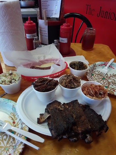 Wonderful family owned establishment. Service. Food. Outdoor grilling. Indoor BBQ atmosphere. My favorites: spicy mac n cheese, turnip greens, cornbread, coleslaw, bbq chicken.