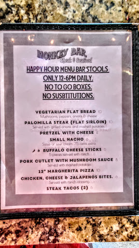 I tried the monkey bar out this week. Ive been in cape coral so long and realized I was the only one out of my group of friends that never went! So I did and I regret it 100% first of all my server, she just seemed ready to go home. You could tell she didnt want to be there and she was rushing me... Couldnt even give.me two minutes to look over the menu. I wouldve ordered more and the check wouldve made her tip better I guess she didnt care. And the place is filthy. I mean, filthy. I couldnt believe it was actually allowed to.be ran. To top it all off when I ordered a filet wellington I just got a filet so I asked to speak to a manager. My server said the.manager was busy but she was actually sitting at the bar speaking Spanish. And not saying nice things in Spanish at all.. I dont know if she thinks only Spanish people understand it. But no.. I understood very well. She was speaking rudely about a customers body shape and it was just rude. Ill never come back. A waste of money. The veggies were great though. Did one thing right!!