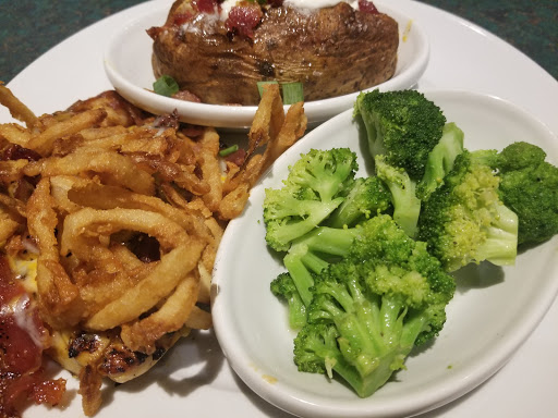 boyfriend and i got coupons in the mail for ten dollars deducted from a meal of twenty or more dollars, and thought wed use them. expecting just a casual lunch. we get there, the restaurant is mostly empty-- there are maybe seven, ten at the most, tables with patrons. despite this (and the fact that most of the people have been served, which would seem to imply server availability) it takes us five+ minutes to be seated-- we have to cross the threshold of the hostess stand, and flag someone down, to get a table. okay, whatever. no big deal. except, we have to ask thrice for water (to be fair and honest, boyfriend is the one who mentions this-- i was in the bathroom while two of these inquiries supposedly took place). i ask if i could please have water with extra lemon, and lime if they have it. server assures me this is no problem. my water arrives, with a lemon slice the size of my pinky nail. okay, if you dont do extra lemon, thats fine, but you could have told me. or just given me the dang lemon, its not exactly worth its weight in gold. im sure the establishment would retain financial solvency if they gave me, like, half a lemon. but whatever, again, no big deal. we order our food-- two burgers, cooked medium. mine is avocado turkey, boyfriends is smokehouse burger; sides are fries for me and loaded mashed potatoes for him. we wait. and wait. and wait. for a quarter of an hour. finally, we figure that though patience is a virtue, there are limits to how long one should be reasonably expected to wordlessly wait for such a simple order in a mostly vacant restaurant. im antsy, my darling is most exasperated. needless to say, this doesnt alter our ability to be polite when asking the waitress the status of our meals. she assures us that she was just checking and the food will be out in a minute; the cook accidentally overcooked them and has been fixing it. okay. well. now im a bit miffed, i was previously giving everyone involved the benefit of the doubt, but jumping jellybeans, lady, do you genuinely expect me to believe youd wait *that* long to check on our order, without, at some point, checking on us, apologizing for the protracted wait, maybe offering us complimentary corn-bread? if you would really wait forty five minutes to check on your (apparently only, and what very much appeared to be one of two tables requiring food) customers order, then i find you an inattentive, inconsiderate waitress. now, i realize that this perhaps couldnt be helped, as our food had been ruined, but the one other table requiring service, who arrived oh, half an hour after us, has gotten their food. that just a minute our food is supposed to be out in, it turns into twenty. so weve waited over an hour. for two *medium* burgers, and simple sides. moment of truth. burgers are... rather bland, especially considering what calorie bombs they are (toppings are fresh, buns are nicely fluffy yet chewy in texture, but otherwise unremarkable). loaded mashed potatoes, again, for containing so many mouth-watering ingredients, are most underwhelming-- i could easily whip us up some thatre much better (and have, to boyfriends delight and proclamation that he never wanted to eat anything else) in five or ten minutes, maximum. i wonder if the cook has yet to discover spices, seasonings. the lack of flavor does, however, make it easier to refrain from consuming more than a few small bites-- we each split our food with the other, for variety, and im entirely devoid of the temptation to continue eating after a single half-forkful of the loaded potatoes, 1/6 of his burger, and 1/4 of mine. despite not having eaten in almost two days, this food is simply unappealing. EXCEPT THE FRIES OHMYGHEEZUSWHEEZINGCHRIST. dem fries is fab--perfect texture, internal and external, seasoning is light but perfectly complimentary to the potato, theyre fresh, warm but not hot, EVERYTHING ABOUT THE FRIES IS TOTES AWESOME!!! go here for the fries.